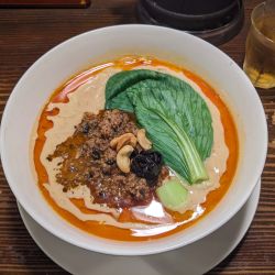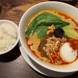 25分ほどで席に案内され1,10月11月秋の期間限定とあるカリー担担麺と小ごはんを注文。