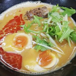にんにくの風味が効いた甘めのカエシの醤油ラーメン。ほっこりする安定の味。ラーメン注文でライス1杯無料もありがたい。深夜も営業しており重宝するお店。テーブル席充実で家族向けの店舗です。ごちそうさまでした。