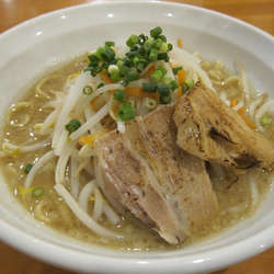ちょうど豚骨ラーメンと醤油ラーメンの合の子といった感じであり、もやしがたくさんのっていてヘルシーに食べられます。薬味がセルフサービスでいろいろあり、味変しながら食べると最後まで美味しく食べられます。
