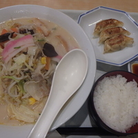 【注 文】麺W冷やしちゃんぽん(745円)、セット餃子(151円)、セットミニチャーハン(162円)。