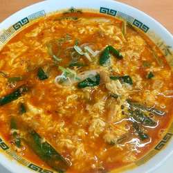 スープは、強めのトロミと、適度な辛さ。個人的にはもうちょい辛くても良いので、卓上アイテムでカスタマイズ。