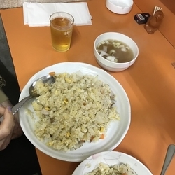 二つのテーブル席は埋まり、左のカウンターの奥に着席します。