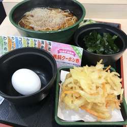 朝そばのかき揚げを三陸わかめに変更し、さらにクーポンでわかめを追加。