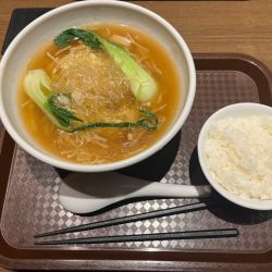 数分で到着しました。スープはあまり赤みがかっていませんが、モヤシや青物といった野菜が目立ちます。おいしそう。スープを一口。さほど辛くはなく、ゴマの風味もさほどしません。ちょっとパンチ不足かな。しか... 続きを見る