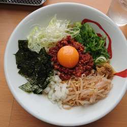 辛いミンチに台湾まぜそばのような雰囲気ですが、ニラは乗りません。かわりにキクラゲやもやしがトッピングされていてバランスが良いです。