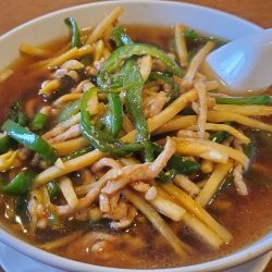 東急東横線綱島駅から3分ほど、駅前商店街のはじ?くらいの場所、2階建ての建物の2階にあります。1階に専用入口、オレンジ地の看板、メニュー掲示、ガラス開き戸。雰囲気的にくたびれた感が少しあります。
