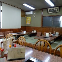 店は道路に面した自宅の1階。店内はかなり年季が入っていて、古い畳の座敷4卓とテーブル2卓。それぞれに焼き肉用ロースターが設置されている。