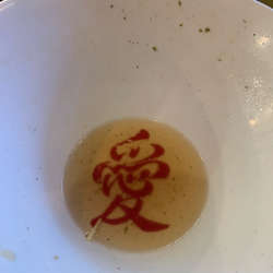 写真はスープ完遂後の丼の文字"愛"という文字はそれはそれで良いとして、店主の想いが感じられた(^-^)