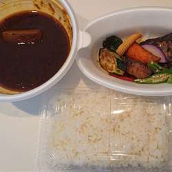 【注文】もりもり野菜のチキンのカレー:1,650円、辛さ6:100円、海老スープ:110円、ライス大盛/250g(お代わり自由):無料