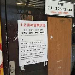 | 備考 | 店の前に営業日が書いてあります。 営業日数からすると道楽でやっている感じです。 |