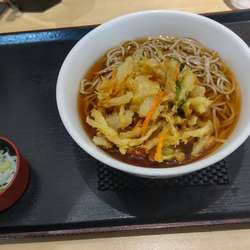 【注文】春菊天そば(490円)+いなり寿司(140円)。