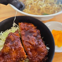 旨味溢れるクリアなスープにモニュっとした中太麺👍とろチヤーも臭みなく絶品。穂先メンマたっぷり😆フルーティな甘みのタレが特徴のカツ丼もめっちゃ好みでした💯