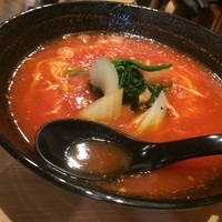 辛さが選べるトマトラーメン。麺は細麺。トマトの甘さがあって辛いんだけどスープ飲み干せました。