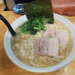 スープは、ライトな豚骨醤油。この系統のスープに、刻み玉ネギは珍しい印象。