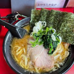 麺は、むちむちの太麺。家系ラーメンには珍しいチョイスな印象だが、これはこれで美味しい。