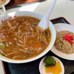| メニュー | メニューの写真を見る モヤシあんかけラーメン 750円 |