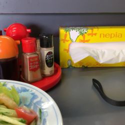 脂の浮いたスープはネリではなく普通のゴマが降りかかっている。
