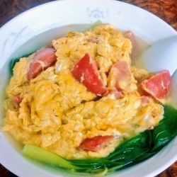 鶏ガラスープを入れて作った炒り卵がちょっと塩っぱかったが、殆ど生のトマトが上手い具合に中和してくれて、ちょっと新鮮なラーメン。