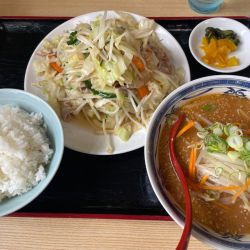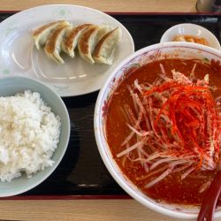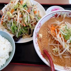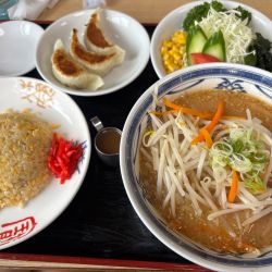 ランチセットの半ラーメン(みそ)+半チャーハン+半ギョウザ+ミニサラダ