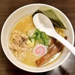 スープはポタージュの様な鶏の旨味が凝縮してる鶏白湯で完飲しそうです笑、麺は中太ですね。