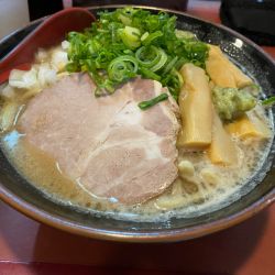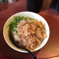 朝ラーメン文化の静岡の雄。日曜ということもあり、8:30で6名待ち。先に食券購入して並ぶシステムです。朝から濃厚と言いつつも、ワサビが入って、爽快感を感じます。また、モリモリのネギご飯がスープに合い、朝から満腹です。
