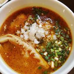 味濃いめではあるが、豚骨ベースに背脂、マー油、玉ねぎの食感、縮れた中太麺がスープに絡み実に美味い。