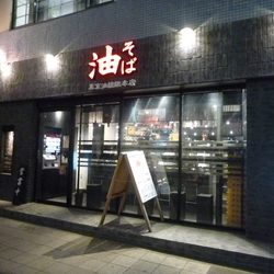 同僚と居酒屋で一杯やった後、〆に同僚が好きな油そばを食べに来た。