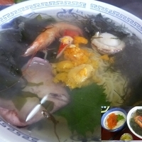 スープは透明な塩清湯。スッキリとしてジンワリとした旨みが広がる。今回は少々ショッパめ。前回聞いた所によると蟹とアサリの出汁だそうだ。
