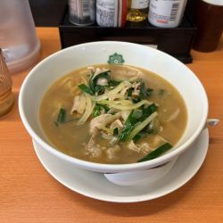 今日は限定の肉ニラらーめん カウンターに座って待つ事10分ご対面〜ん 見た目はシンプルだけど 豚肉 玉ねぎスライスが 結構入っていてお得です 醤油ベースで少し甘めの出汁でとても美味しいです 麺は 細ちぢれ麺 スープに合って良い感じ 限定じゃなくて オリジナルメニューにして欲しいです ご馳走様でした。