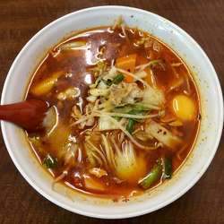 ラー油の分厚い層があり、刺激の強い辛さが広がるものの、奥に旨味も感じられる。咽ないようにそっと啜りながら食べる。辛さレベルは確かに一般的には激辛では... 続きを見る