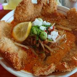 スープは唐辛子の効いた台湾ラーメン系のストレートな辛さ 細麺は乾麺使用