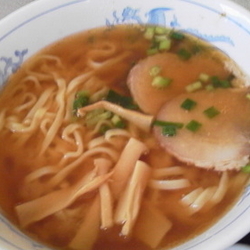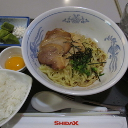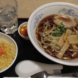 麺は、軽いウエーブが付いた中細で並硬の茹で加減。