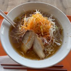 スープはあっさり鶏豚濃厚合わせダシ 麺はちぢれ中太麺