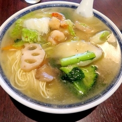 スープは、淡い醤油ベース。強めのとろみが特徴的。