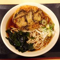 あたたかい天ぷらそばを選びましたが、お得な朝そばがあったんですね。 失敗した。。