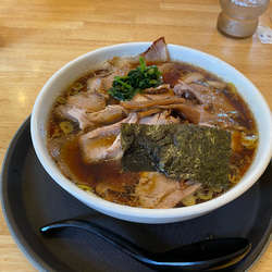 スープは軽めの生姜風味、普通盛りでも175gの麺は柔らか過ぎて、個人的には苦手でした。