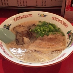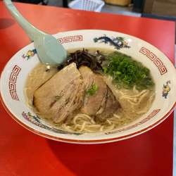 濃厚とんこつスープ嫌な臭みは無し。細ストレート麺。しっかりしたコシがあり旨い。ネギ、キクラゲ、チャーシュー10枚バラ、高菜、紅生姜、ニンニクチップ、すりニンニク食べ放題。