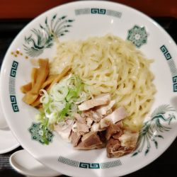 半熟卵を割入れよく混ぜてからすすると、鰹の出汁が効いた醤油味のタレで、旨味をしっかりと感じられます。麺は太麺でコシがあり、1.5玉の量で食べごたえがあります。具材にチャーシューやメンマがのり、食べてる時のいいアクセントになっています。途中、ラー油やお酢を入れて味変し、最後までおいしくいただきました。