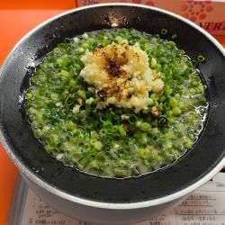 ネギと焦がしニンニクがたっぷりのとんこつラーメン。にんにく好きなら食べておきたいパンチのある一杯。