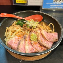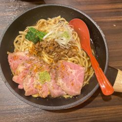 ローストビーフがこんなにのっていて1,000円と言うのも嬉しいですが、上質な脂が平打ちの麺に絡む一杯は必ずここで一度は食べて欲しい🙌
