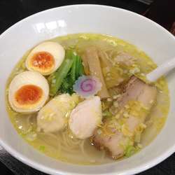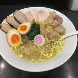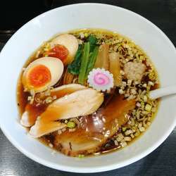 平日の夜7時30分頃に訪問。店舗入口脇にある券売機で標題の品のボタンをプッシュ。先客1名、後客2名。テーブル席に座り、マスターにチケットを渡し、待つこと数分で配膳された丼に、具材は豚バラチャーシュー1枚、鶏チャーシュー2枚、鶏肉団子、ナルト、小松菜、メンマ、刻みネギ、麺は中細縮れ麺、スープは青森地鶏シャモロックを使用した油とスープ。麺と鶏油が浮いているスープは、相性がとても良く... 続きを見る