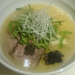 | メニュー | メニューの写真を見る 鶏だし黒トリュフの塩ラーメン(トリュフペースト入り)980円 |