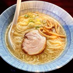 シンプルなビジュアルで背脂少量の淡麗塩スープ