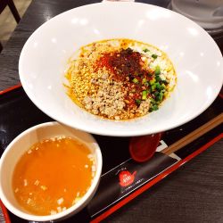 本日はコチラ「ファイヤーホール4000」へ伺い、火鍋湯麺を激辛で!と思っていたのですが、3月なのに気温が20℃超えと云うアホみたいな天気に、ついつい「4000式汁なし担々麺」をクールに頂いて参りました。