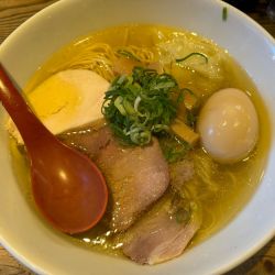 軍鶏味玉塩ラーメン(チャーシュー2枚・味玉・メンマ2本・九条ネギ) 1,150