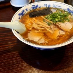 豚骨・鶏ガラだしのスッキリしたスープ、油が少なくてシンプルで懐かしさを感じる味わい。麺はあっさりしたスープと相性のよい細麺なのでツルッと食べられる。昔懐かしの屋台らしいルックスのラーメン。