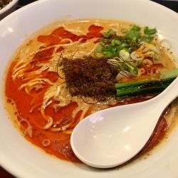 濃厚胡麻ベースなスープにほどよい辛さ。