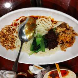 この日は「辛いもの好きメンバー忘年会」で四川料理の【天然居・日本橋店】に行き、みんなでシェアする形での最後の三杯目には、こちらのお店の名物であるという≪汁無し担担麺≫をいただきました🍜
