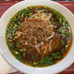 スープは胡麻の甘みの効いたピリ辛担々味。